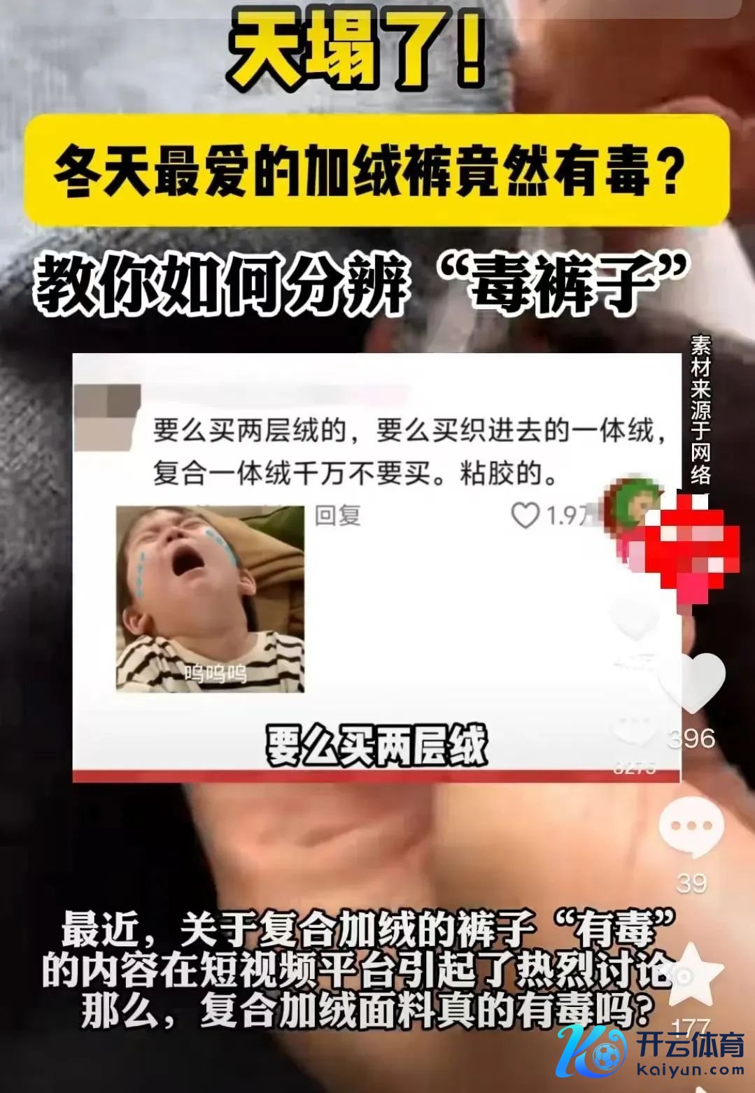 冬天的脚步越来越近了,最近你穿上加绒衣物了吗?日前,网上有短视频称:加绒衣物可能含有毒物资开云体育,引起网友良善和热议。