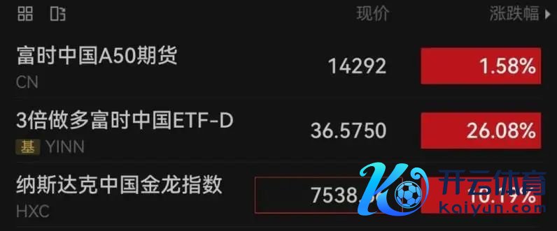 与此同期,富时A50中国指数期货在今天白昼暴涨后晚上开盘连接走高,结果发稿涨幅约1.5%。此外,3倍作念多富时中国ETF大涨超26%。