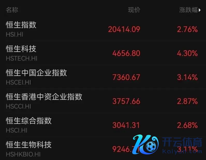 香港恒生指数涨2.76%,再行站上2万点;恒生科技指数涨超4.3%。