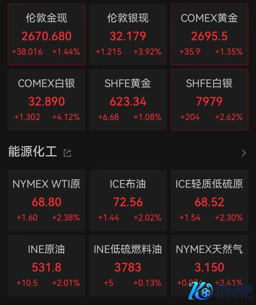 贵金属方面,COMEX黄金期货报2695.5好意思元/盎司,日内涨超1%;COMEX白银期货站上32.8好意思元/盎司,日内涨超4%。