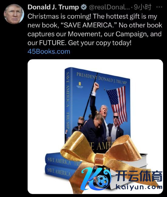 15日,好意思国当选总统特朗普在酬酢平台X发文宣传新书《补救好意思国(Save America)》,称这是最热点的圣诞节礼物,并先容称“莫得其他的书能方式咱们的指导、咱们的竞选和咱们的翌日。”