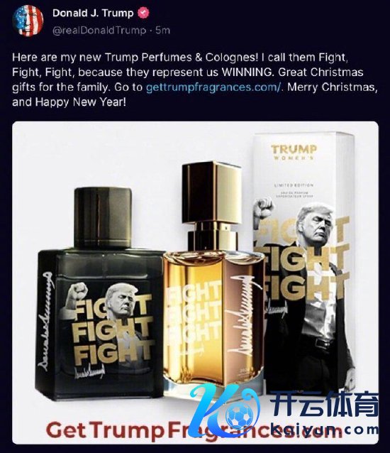 先前据报说念,特朗普7日在Truth Social上发文,推出以“特朗普香水和古龙水”为品牌的全新香水系列。该系列以“斗殴,斗殴,斗殴”为名。特朗普写说念: “这是我的新特朗普香水和古龙水!我把它们称为斗殴、斗殴、斗殴,因为它们代表着咱们的得胜。这是送给家东说念主的很棒的圣诞礼物。”