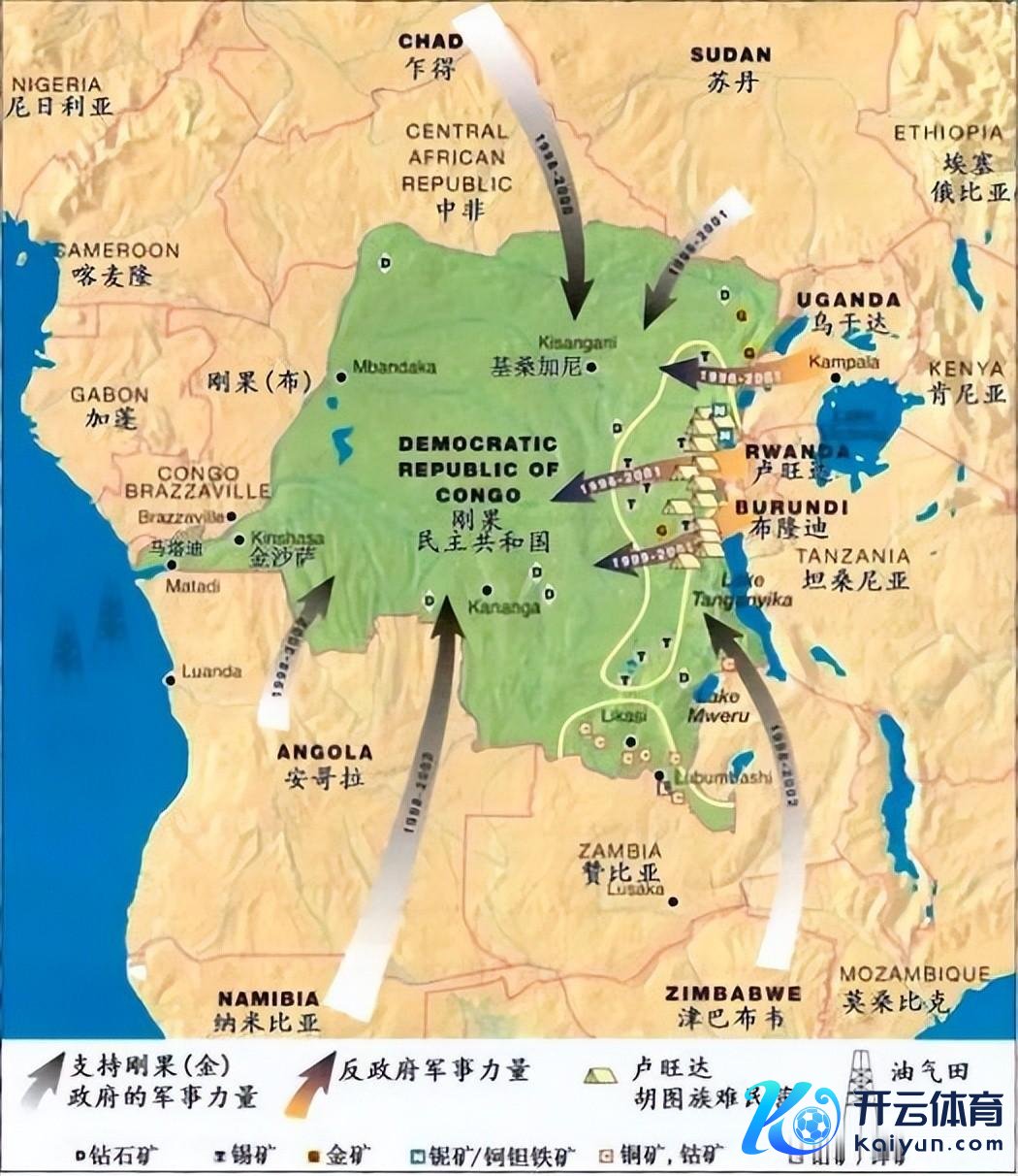 其中刚果金的北基伍省和南基伍省,与乌干达、卢旺达和布隆迪三国交壤,加上胡图族东谈主和图西族东谈主跨刚果(金)、乌干达、卢旺达和布隆迪四国分裂,他们往复穿梭打打杀杀,十分乱。
